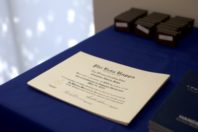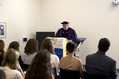 The Induction Ceremony for the 2025 cohort of the Psi of California Chapter was held on May 13, 2025. In this ceremony, 35 outstanding students and one honorary member were inducted into Phi Beta Kappa. Honorary inductee and Vice Provost for Undergraduate Education and Student Success Brad Petitfils was the featured guest speaker.